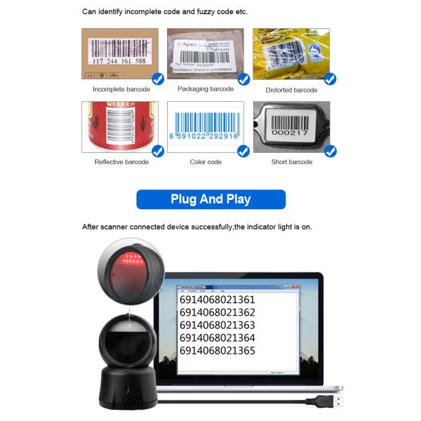 Wireless Desktop Barcode Scanner High Speed Handsfree 2D Bar Code Reader with charging base Images |